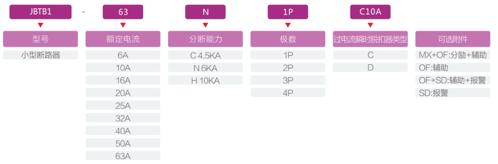 JBTB1-63系列小型斷路器,適用于照明配電系統(tǒng)(C型)或電動(dòng)機(jī)的配電系統(tǒng)(D型)。